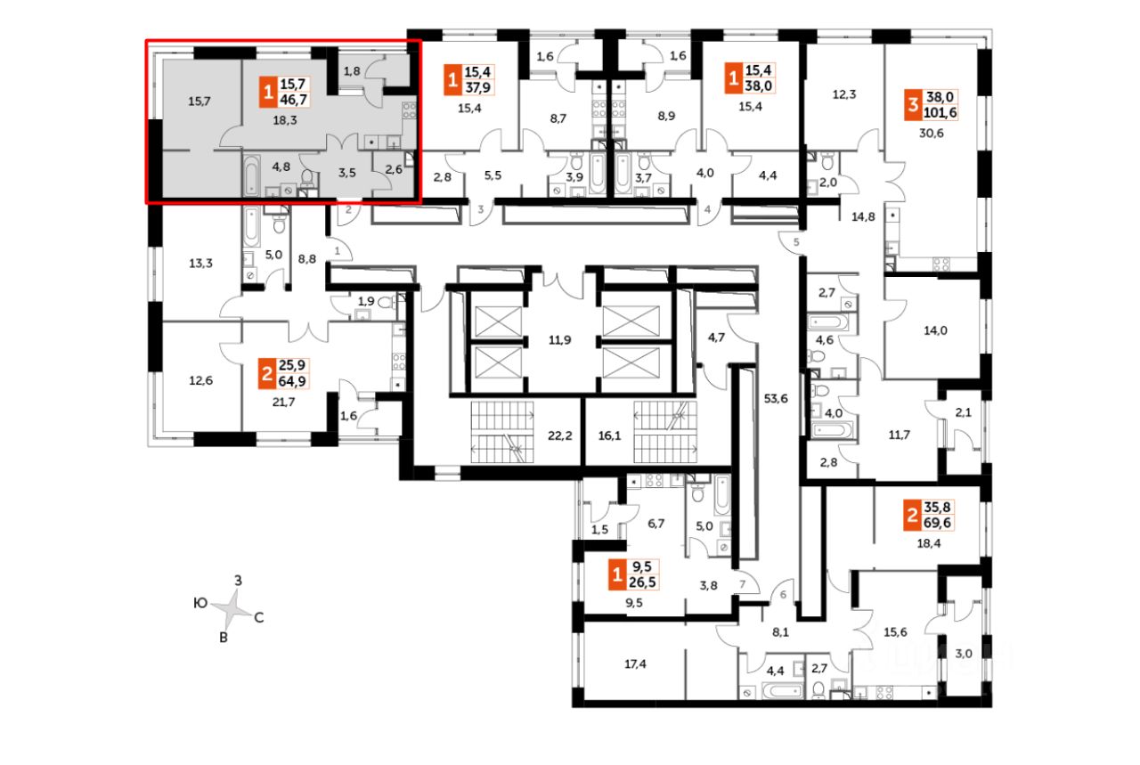 Квартира в новом ЖК бизнес-класса с благоустроенной дворовой территорией.