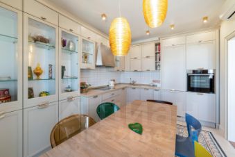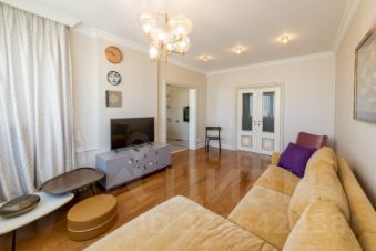 Ремонт выполнен по индивидуальному проекту с использованием импортных, натуральных материалов высокого качества. Кухня итальянской фабрики Aster Cucine оборудована необходимой техникой (вытяжка, духовой шкаф и варочная панель, посудомоечная машина, встроенный холодильник, стиральная машина). Ванная комната отделана итальянской плиткой ручной работы. Полы испанская плитка, массив бамбука. Подоконники во всей квартире из мрамора. Светильники преимущественно итальянские, люстры из муранского стекла. Установлены кондиционеры и теплые полы, проточный водонагреватель, имеется охранная сигнализация. Встроенная мебель и техника остаются, остальное - по договоренности.