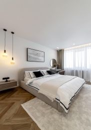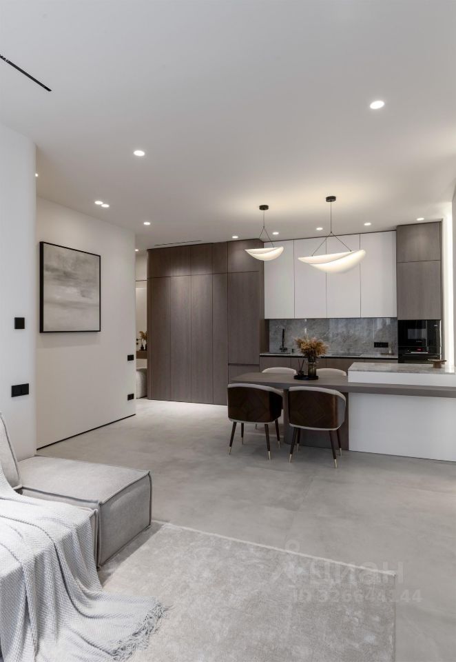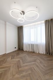 В квартире выполнен роскошный дизайнерский ремонт. Трендовая мебель, модные закругления и освещение не оставит Вас равнодушными.