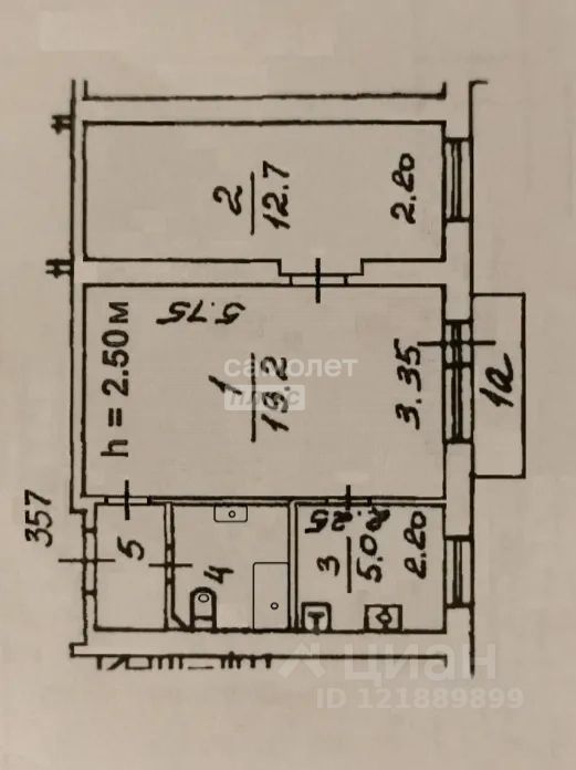 Планировка: две жилые комнаты (19.2 м² и 12.7 м²). Из просторной гостиной — выход в спальню и на кухню.