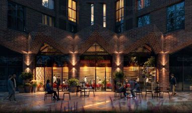 Красивый рисунок кирпича в сочетании с блеском панорамного стекла придает новое звучание стилю лофт, дополняя облик района.