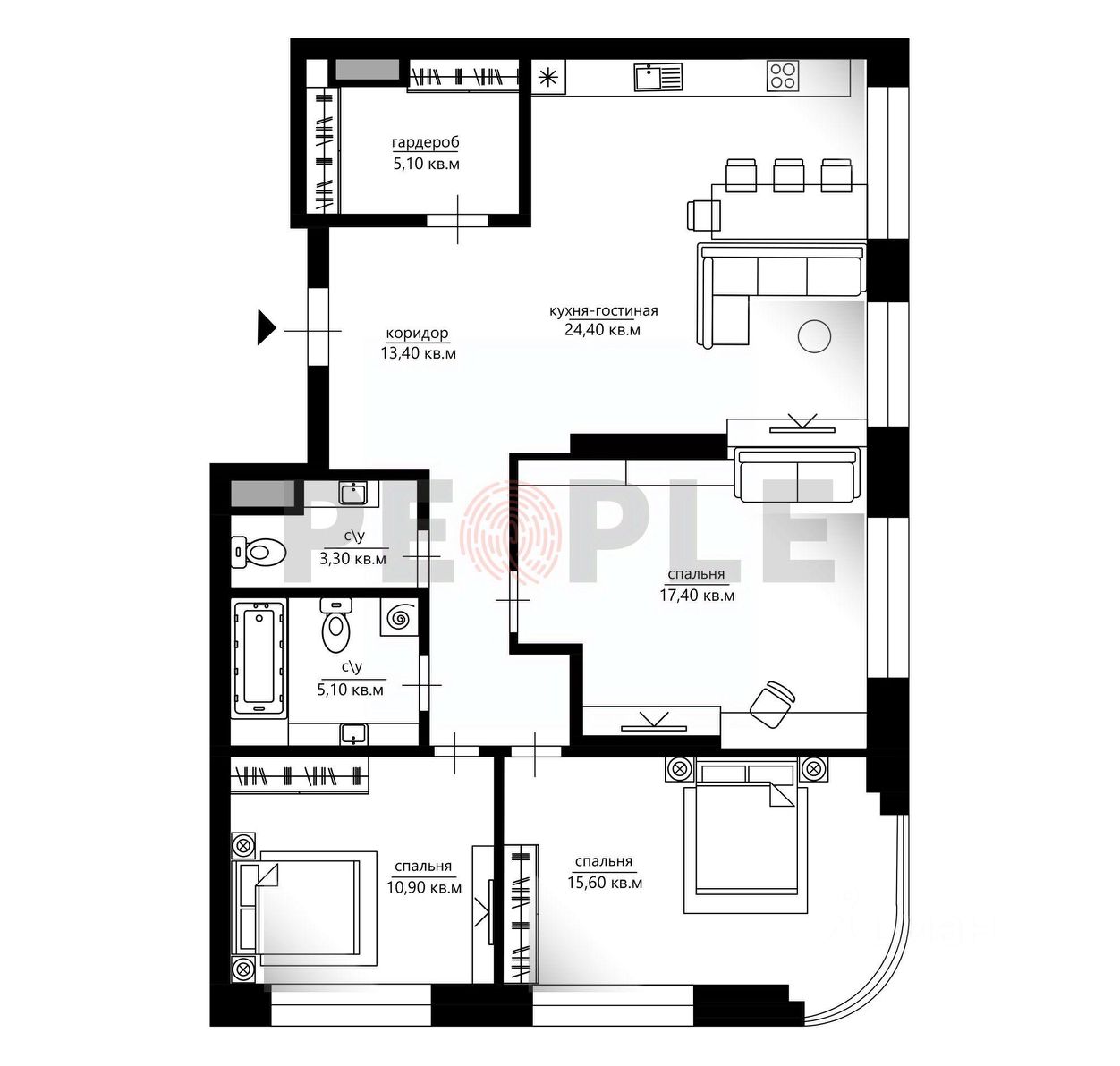 - три спальни