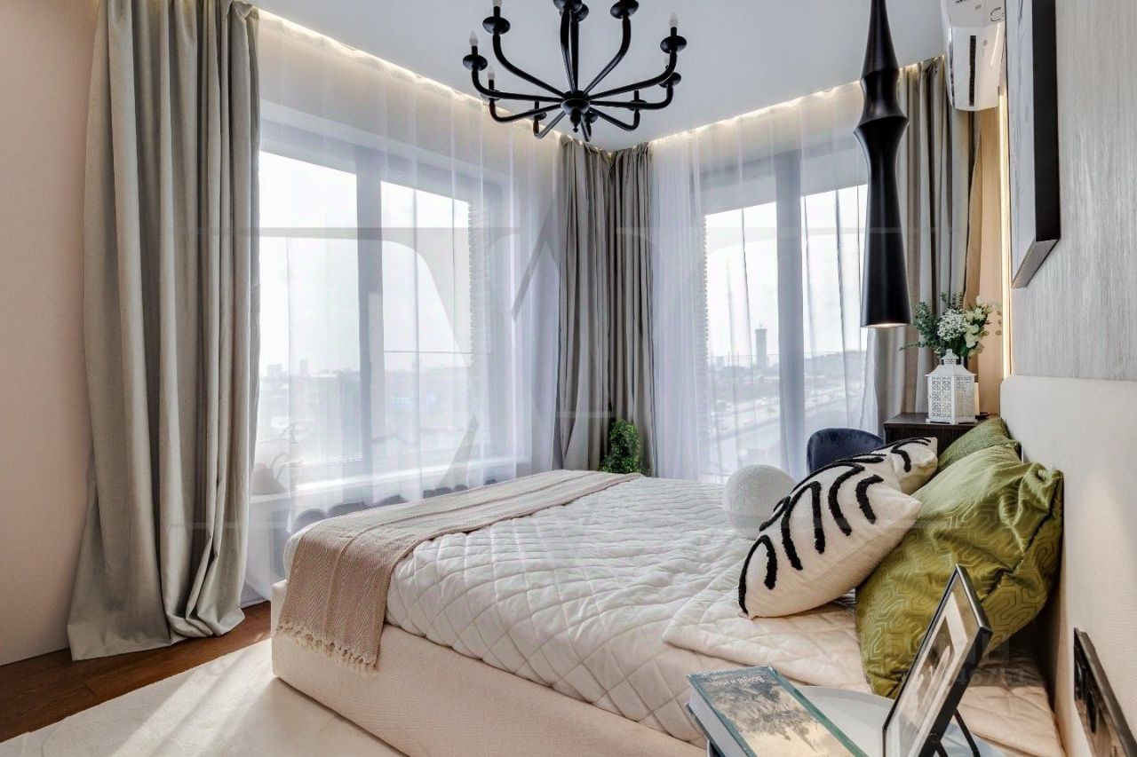 Квартира с новой мебелью, кухонным гарнитуром и техникой. Планировка: кухня-гостинная, две изолированные спальни, два санузла. Высота потолков 3 метра.