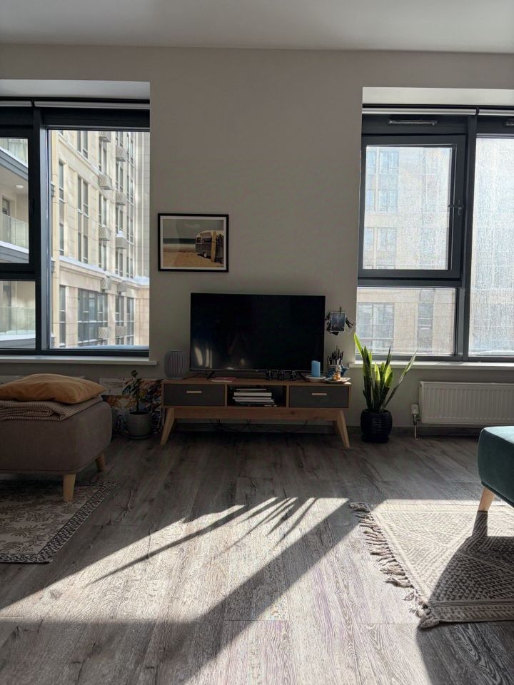 Апартамент без внутренних стен, с просторной жилой площадью и большими окнами - 40 кв.м. прекрасно подойдёт для одного/двух человек для постоянного проживания, а так же площадь может легко использоваться под офис/кабинет (ремонт в спокойных оттенках позволяет использовать апарт в разных направлениях, мебель вся мобильная, легко освободить за короткий промежуток времени).