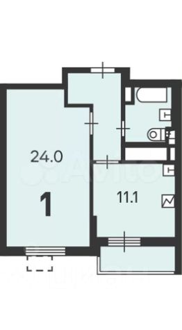 Комната 23,9 кв.м (при желании) позволяет сделать комфортное зонирование на спальное место и место для гостей