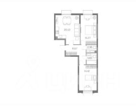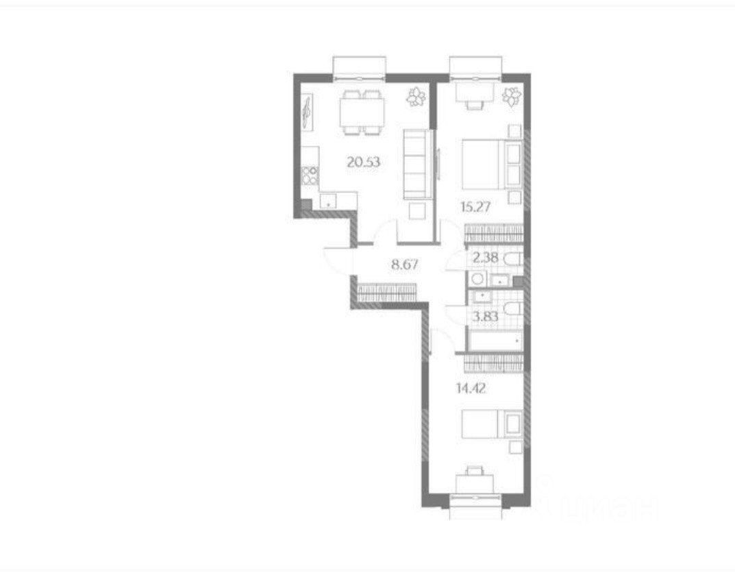Просторная ЕВРО ТРЕШКА с функциональной планировкой: 2 изолированные комнаты и кухня-гостиная, 2 санузла (один можно переоборудовать под гардероб).
