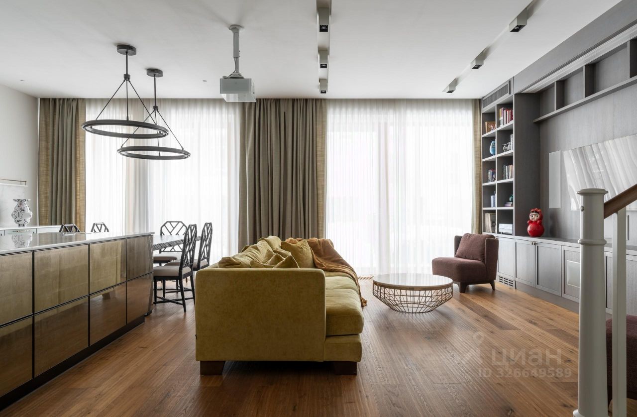 Стильная четырехкомнатная квартира-таунхаус с дорогостоящим ремонтом, мебелью, техникой, сантехникой и освещением топ-уровня (Sub-zero, Wolf, Duravit, Miele и др.), имеет собственный патио-двор с ландшафтным дизайном и свой выход.