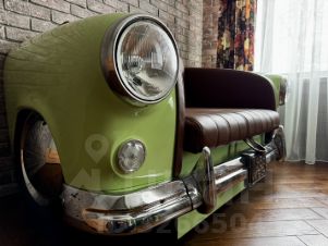 -раскладной диван от творческой мастерской Измашин — эксклюзивная работа в единственном экземпляре. Диван изготовлен из советского автомобиля Москвич407 и обит натуральной кожей.