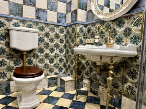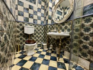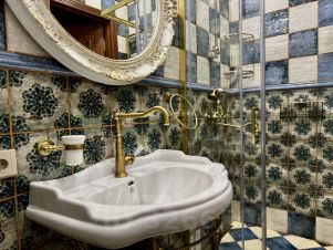 - Ванная комната оформлена итальянской плиткой и итальянской сантехникой.