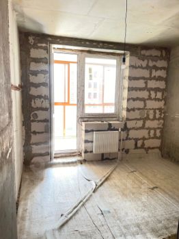 Квартира без отделки, временно установлены в санузле ванна и унитаз, на кухне плита.