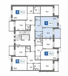 В квартире просторная прихожая 7,5м2, гардеробная 2,1 м2, санузел 4,5 м2, из кухни 12 м2 есть выход на большую лоджию с панорамным остеклением, комната 20,2 м2 имеет выход на французский балкон.