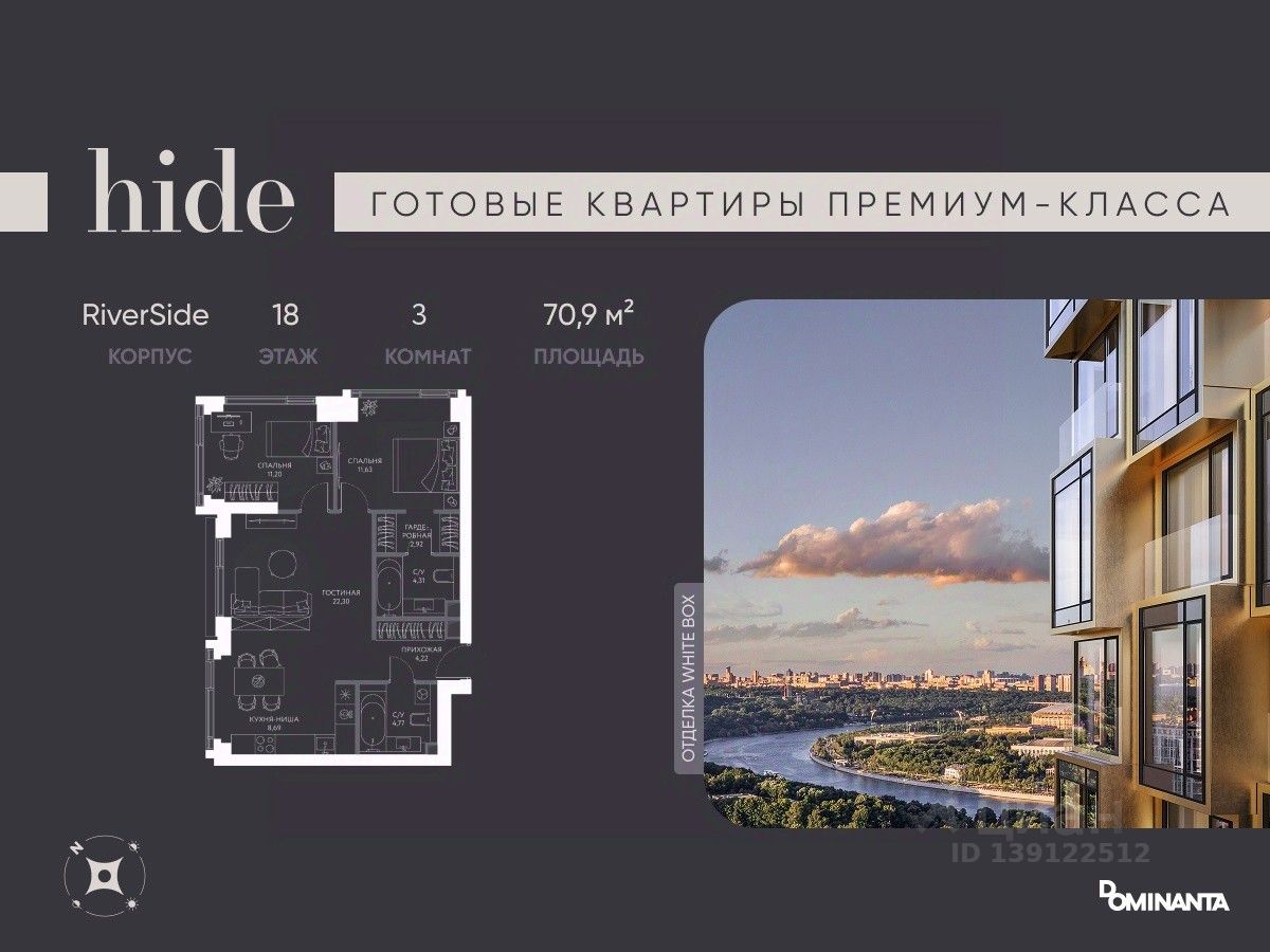 Прямая продажа от застройщика! Дом сдан, ключи в день покупки. Предлагается просторная 3-комнатная квартира 70.9 м² с отделкой white box на 18 этаже в проекте hide — жилом небоскребе премиум-класса от Dominanta и MR. ТОП-ВИДЫ НА 360: Воробьевы горы, Москва-Сити, Лужники, центр, МГУ, Парк Победы. ПРЕСТИЖНАЯ ЛОКАЦИЯ: Расположение на границе районов Раменки и Хамовники: быстро до ТТК, Москва-Сити, а рядом природа — Воробьевы горы и заказники Долины реки Сетунь. КОМФОРТ НОВОГО УРОВНЯ: панорамное остекление, "Умный дом", продуманная планировка евроформата. LIFE SPACE ДЛЯ РЕЗИДЕНТОВ: видовая терраса, хоум-офис, фитнес зал, бьюти-кабинет, общественная гостиная. Более 50% двора — ландшафтный парк с холмами и "парящими" мостами. СПЕЦИАЛЬНОЕ ПРЕДЛОЖЕНИЕ: скидка 10% при полной оплате и ипотеке без субсидий — действует до 28.02.2026. Не упустите шанс!