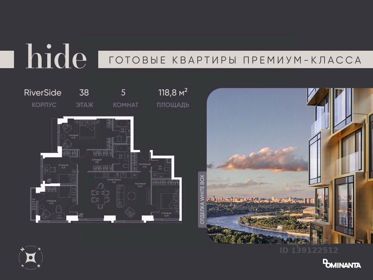 Прямая продажа от застройщика! Дом сдан, ключи в день покупки. Предлагается просторная 5-комнатная квартира 118.8 м² с отделкой white box на 38 этаже в проекте hide — жилом небоскребе премиум-класса от Dominanta и MR. ТОП-ВИДЫ НА 360: Воробьевы горы, Москва-Сити, Лужники, центр, МГУ, Парк Победы. ПРЕСТИЖНАЯ ЛОКАЦИЯ: Расположение на границе районов Раменки и Хамовники: быстро до ТТК, Москва-Сити, а рядом природа — Воробьевы горы и заказники Долины реки Сетунь. КОМФОРТ НОВОГО УРОВНЯ: панорамное остекление, "Умный дом", продуманная планировка евроформата. LIFE SPACE ДЛЯ РЕЗИДЕНТОВ: видовая терраса, хоум-офис, фитнес зал, бьюти-кабинет, общественная гостиная. Более 50% двора — ландшафтный парк с холмами и "парящими" мостами. СПЕЦИАЛЬНОЕ ПРЕДЛОЖЕНИЕ: скидка 10% при полной оплате и ипотеке без субсидий — действует до 28.02.2026. Не упустите шанс!