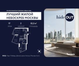 Прямая продажа от застройщика. Продается 2-комнатная квартира площадью 52.5 кв.м. на 2-м этаже 34-этажного дома в ЖК hideOUT с панорамными видами: Парк Победы, Долина реки Сетунь, Москва-Сити, Воробьевы горы. Высота потолков 3,25 м. hideOUT — премиальный проект компании Dominanta. Это новый уровень жизни и комфорта без компромиссов. Две башни — 34 и 49 этажей — открывают захватывающие виды на Москву. Архитектурной доминантой проекта становится мост, соединяющий башни на высоте 80 метров. Закрытая территория, охрана 24/7, зона экстренной безопасности на подземном уровне, система пожаротушения. На мосту между башнями на 22-м этаже находится SocialHUB — предусмотрено 16 комфортных пространств для работы, отдыха и развлечений с панорамными видами и клубным форматом доступа. Концепция благоустройства hideOUT — баланс между природой и технологичным городом будущего. На территории сада предусмотрены 15 зон для отдыха, работы, спорта и детей. Знаковым местом станет центральная площадь с амфитеатром и водопадом — сочетание камней, растений и струящейся воды создает идеальный баланс с природой. В проекте действуют привлекательные условия покупки: - скидка до 20% при 100% оплате стоимости лота и ипотеке без субсидирования. Предложение действует до 28.02.2026. - рассрочка 0% на 12 месяцев с первоначальным взносом 30% / на 18 месяцев с первоначальным взносом 50%. Застройщик АО "СЗ "ХАЙДАУТ", ИНН 7729058636, ОГРН 1027739319420. Проектная декларация на сайте наш.дом.рф. Предложение не является публичной офертой.