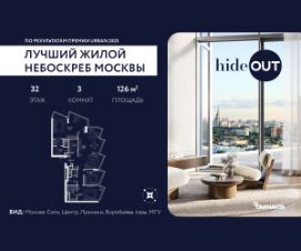 Прямая продажа от застройщика. Продается 4-комнатная квартира площадью 126 кв.м. на 5-м этаже 34-этажного дома в ЖК hideOUT с панорамными видами: Центр, Лужники, Воробьёвы горы, МГУ. Высота потолков 3,25 м. hideOUT — премиальный проект компании Dominanta. Это новый уровень жизни и комфорта без компромиссов. Две башни — 34 и 49 этажей — открывают захватывающие виды на Москву. Архитектурной доминантой проекта становится мост, соединяющий башни на высоте 80 метров. Закрытая территория, охрана 24/7, зона экстренной безопасности на подземном уровне, система пожаротушения. На мосту между башнями на 22-м этаже находится SocialHUB — предусмотрено 16 комфортных пространств для работы, отдыха и развлечений с панорамными видами и клубным форматом доступа. Концепция благоустройства hideOUT — баланс между природой и технологичным городом будущего. На территории сада предусмотрены 15 зон для отдыха, работы, спорта и детей. Знаковым местом станет центральная площадь с амфитеатром и водопадом — сочетание камней, растений и струящейся воды создает идеальный баланс с природой. В проекте действуют привлекательные условия покупки: - скидка до 20% при 100% оплате стоимости лота и ипотеке без субсидирования. Предложение действует до 28.02.2026. - рассрочка 0% на 12 месяцев с первоначальным взносом 30% / на 18 месяцев с первоначальным взносом 50%. Застройщик АО "СЗ "ХАЙДАУТ", ИНН 7729058636, ОГРН 1027739319420. Проектная декларация на сайте наш.дом.рф. Предложение не является публичной офертой.