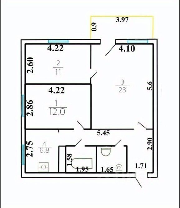 - Планировка удобная с возможностью переоборудовать квартиру под себя или сдачу. - Три просторных комнаты - 23м2 +12м2+11м2, прихожая 5м2. Высокие потолки 2,86 м.