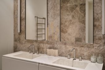 Удобная и функциональная планировка квартиры позволяет разместиться семьей любого состава: две мастер-спальни, несколько гардеробных, в том числе сезонная, большая кухня-гостиная с собственной террасой, постирочная, гостевой санузел - все предусмотрено для вашего комфортного проживания. Апартаменты полностью оборудованы техникой.