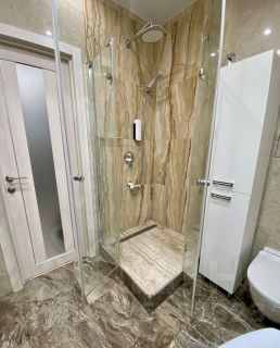- Качество в деталях: Кухня с полным комплектом техники (варочная панель, духовой шкаф, холодильник, вытяжка, стиральная машина). Сантехника от ведущих европейских и турецких брендов. Установлен кондиционер.