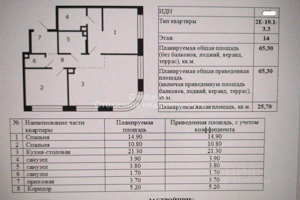 Общая площадь 65.3 кв.м