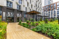 Территория внутреннего двора огороженная и охраняемая, с системой видеонаблюдения, видеосвязь с консьержем, автоматизированный доступ на территорию. Эксплуатируемая кровля для отдыха. Детские площадки без машин. На первых этажах зданий супермаркеты, аптеки, кафе и рестораны, фитнес-центры, салоны красоты, частный детский сад в доме.