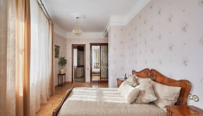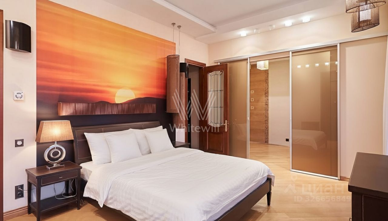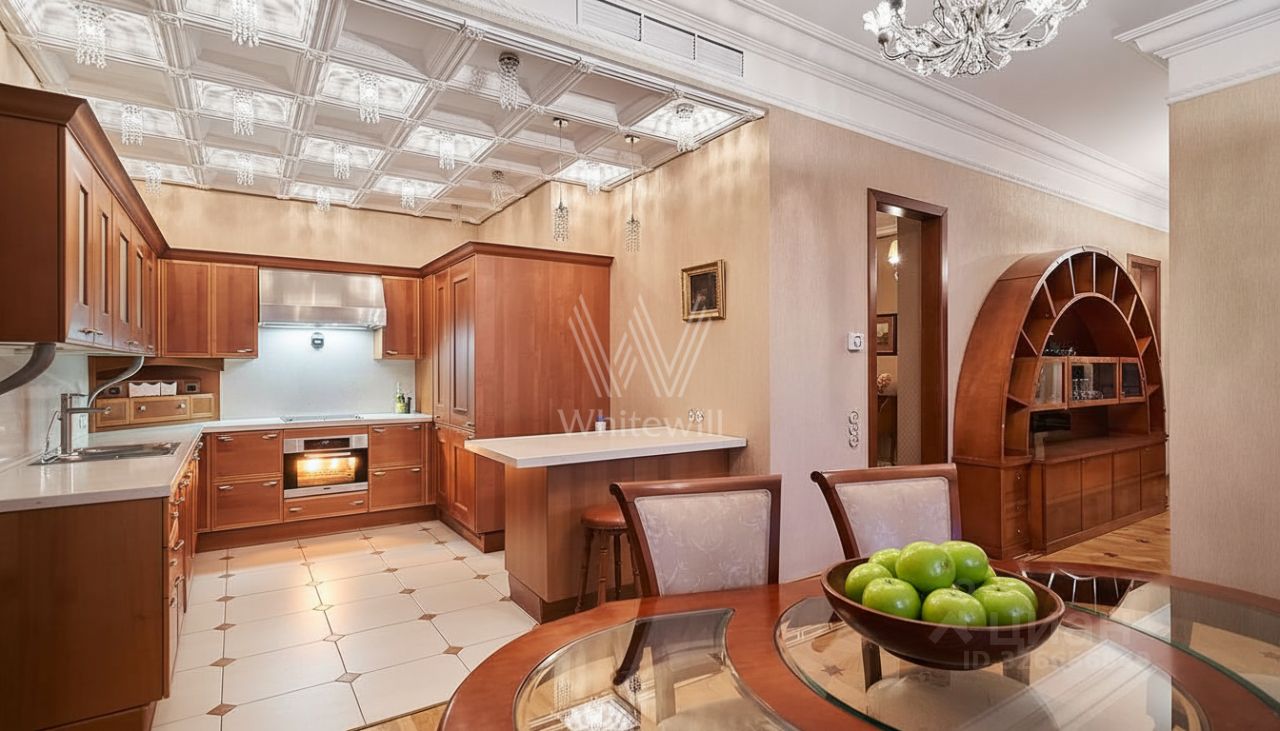 Двухуровневый пентхаус с террасой в клубном доме "Сад Лабиринт" на Патриарших прудах. Пентхаус расположен на последних седьмом и восьмом этажах. Интерьер оформлен в классическом стиле, на полу выложен наборный паркет и премиальный керамогранит. Мебель изготовлена по индивидуальному заказу из ценных пород дерева, натуральной кожи, мрамора и редких камней. С террасы открываются панорамные виды на исторический центр Москвы.