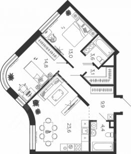 * Спальня 13,00 м2