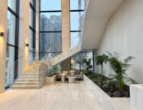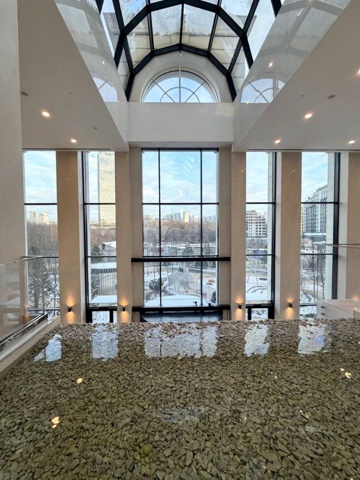 Событие-5 самая премиальная часть События. Две изящные 32-этажные башни в стиле ар-деко. Центральная входная группа дома - это изящный двухуровневый атриум со стеклянной крышей и витражами. В лобби расположен ресепшен с кофе-поинтом, цифровые почтовые ящики, лаунж-зона, коворкинг, детский клуб и декоративный водопад.