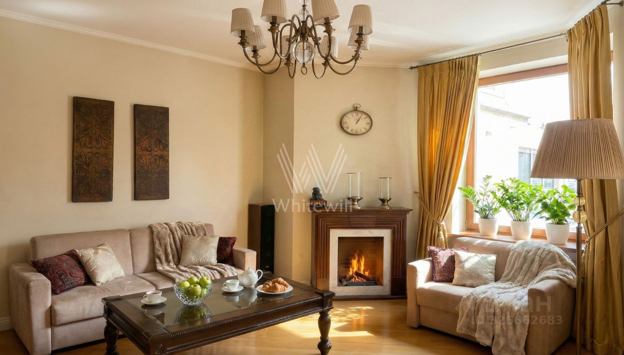 Функциональная планировка включает кухню-гостиную с камином, спальню с выходом на балкон, просторную гардеробную с окном, которую можно оборудовать как вторую спальню, ванную комнату с хаммамом и холл. Окна ориентированы на три стороны света, открываются виды на благоустроенную территорию комплекса.