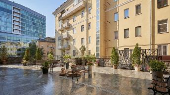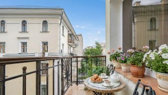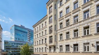 Квартира с одной спальней общей площадью 90 м² в клубном особняке "Печатников переулок, 3" на Цветном бульваре. Квартира расположена на пятом этаже. Интерьер оформлен в стиле современной классики. Установлена система центрального кондиционирования. Квартира полностью меблирована и укомплектована бытовой техникой.