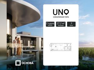 Продается студия площадью 27.2 кв.м. на 9-м этаже