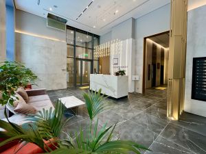 Монолитный дом, построенный из качественных материалов и с использованием современных технологий. На первом этаже стильное лобби со стойкой ресепшен, лаундж-зоной и обустроенной лапомойкой.