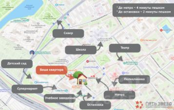 - Метро (350 метров);