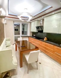 Живите красиво и счастливо в своей квартире в ЖК бизнес класса! В пешей доступности от метро! - Просторная двушка с премиальной отделкой использованием высококачественных материалов. На полу элитный паркет Палисандр из натурального дерева, в детской комнате пробковые полы (гипоалергенно для детей), полы с подогревом везде, где есть плитка. На стенах высокопрочная штукатурка (состоит из 9 слоёв) - дело рук профессионального художника. - Вся мебель из Европы и США, произведена на заказ, в квартире нет мебели, купленной в магазине. - Кухонный гарнитур из натуральных материалов производство Чехия, встроенная техника: холодильник Liebherr, посудомойка и духовой шкаф с функцией микроволновки Siemens. - Эргономичная планировка: просторная кухня 14 кв.м., спальня 14,3 кв.м., детская комната 14.2 кв.м., гостиная с чилаут зоной 16.4 кв.м., в которой на потолке установлено витражное панно, создающее имитацию дневного света. В детской комнате вместительная гардеробная, в спальне шкаф купе с системой хранения, раздвижные двери обшиты натуральной алькантарой. Скрытый стеллаж за кроватью в комнате. Гардеробная и шкаф купе в прихожей, очень много места для хранения вещей. - Два санузла. Сантехника премиум качества от Duravit и Villeroy-Boch. Стиральная машина с функцией сушилки от Siemens, водонагревательный бойлер, кондиционеры в каждой комнате и гостиной. - Эта квартира — готовое решение для жизни в комфорте. Вся мебель и техника входят в стоимость, вам останется только занести свои вещи, без лишних хлопот. - Утеплённая лоджия из спальни, оборудовано рабочее место. Вторая лоджия из кухни. - Презентабельная входная группа, в подъезде консьерж. Подземный паркинг, в который можно спуститься на лифте с этажа. Огороженная территория, охрана, видеонаблюдение по периметру. - В шаговой доступности две школы, детский сад, торговый центр Коломбус, рестораны, спортивные и медицинские учреждения. Рядом с домом парк 30 летия Победы. До метро 8 минут пешком, удобный выезд на Варшавское шоссе. - Один собственник с момента постройки дома, чистые документы, свободная продажа, обременений нет. Звоните и записывайтесь на просмотр!