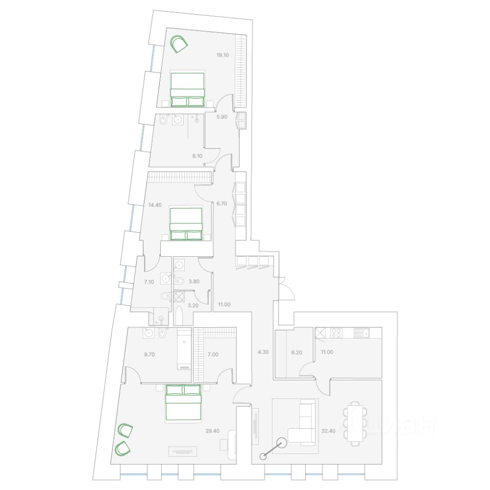 Продаётся 3-комнатная квартира в строящемся доме (34с3), срок сдачи: II-кв. 2026, общей площадью 179.3 кв.м., на 4 этаже. Реставрация с приспособлением под жилой дом с помещениями общественного назначения и подземной автостоянкой выявленного объекта культурного наследия "Кокоревское подворье" 1860-1867 гг; 1880-е гг., архитектор И.Д. Черник, по адресу: г. Москва, ЦАО, Софийская наб. 34 стр. 3