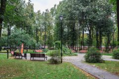 Очень тихо. Окна не смотрят в сторону улицы, выходят во двор и на ухоженный зеленый сад.