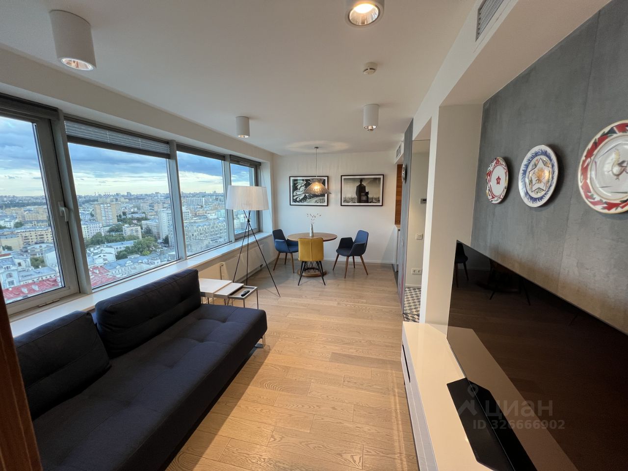 Уникальный вид на центр Москвы с 19 этажа: Башни Кремля, Храм Христа Спасителя, МИД, МГУ и др. В квартире много света, в гостиной 4 окна, в спальне 2 окна.