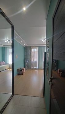 • Подвесной потолок с 3х-уровневым освещением. Розетка для телевизора и выведенная электрика для дополнительного освещения балкона и ванной;