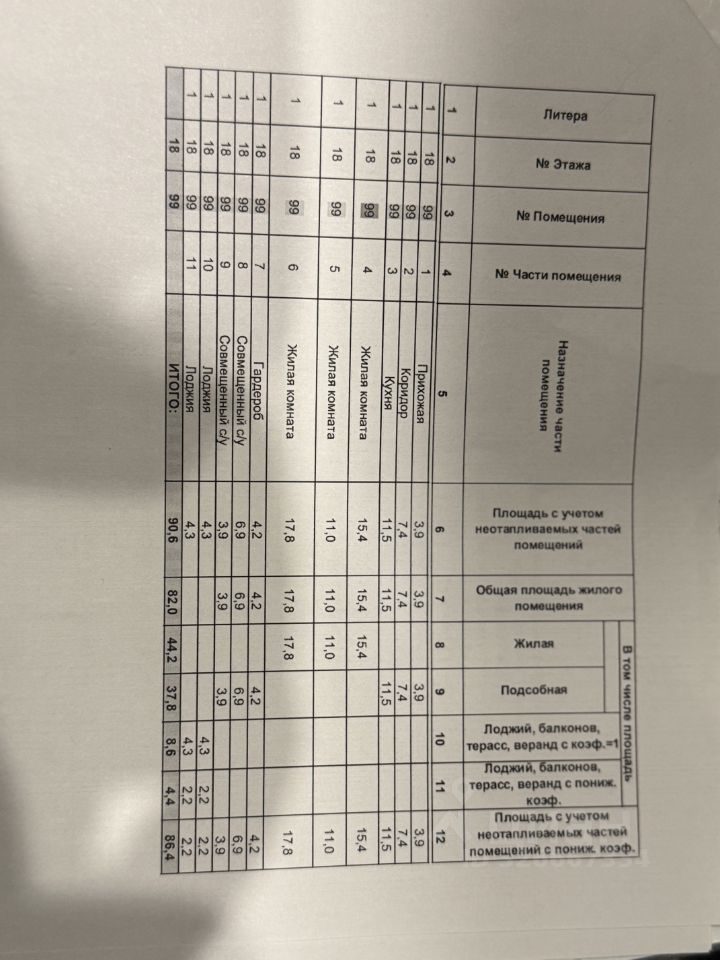 Общая площадь квартиры — 86,4 кв. м (с учетом лоджий), этаж 18 из 28