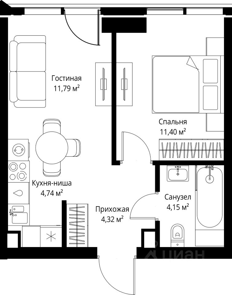 В продаже квартира площадью 36.40 м² с предчистовой отделкой на 10 этаже 55 этажного дома. Квартира расположена в корпусе Anna.