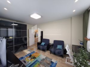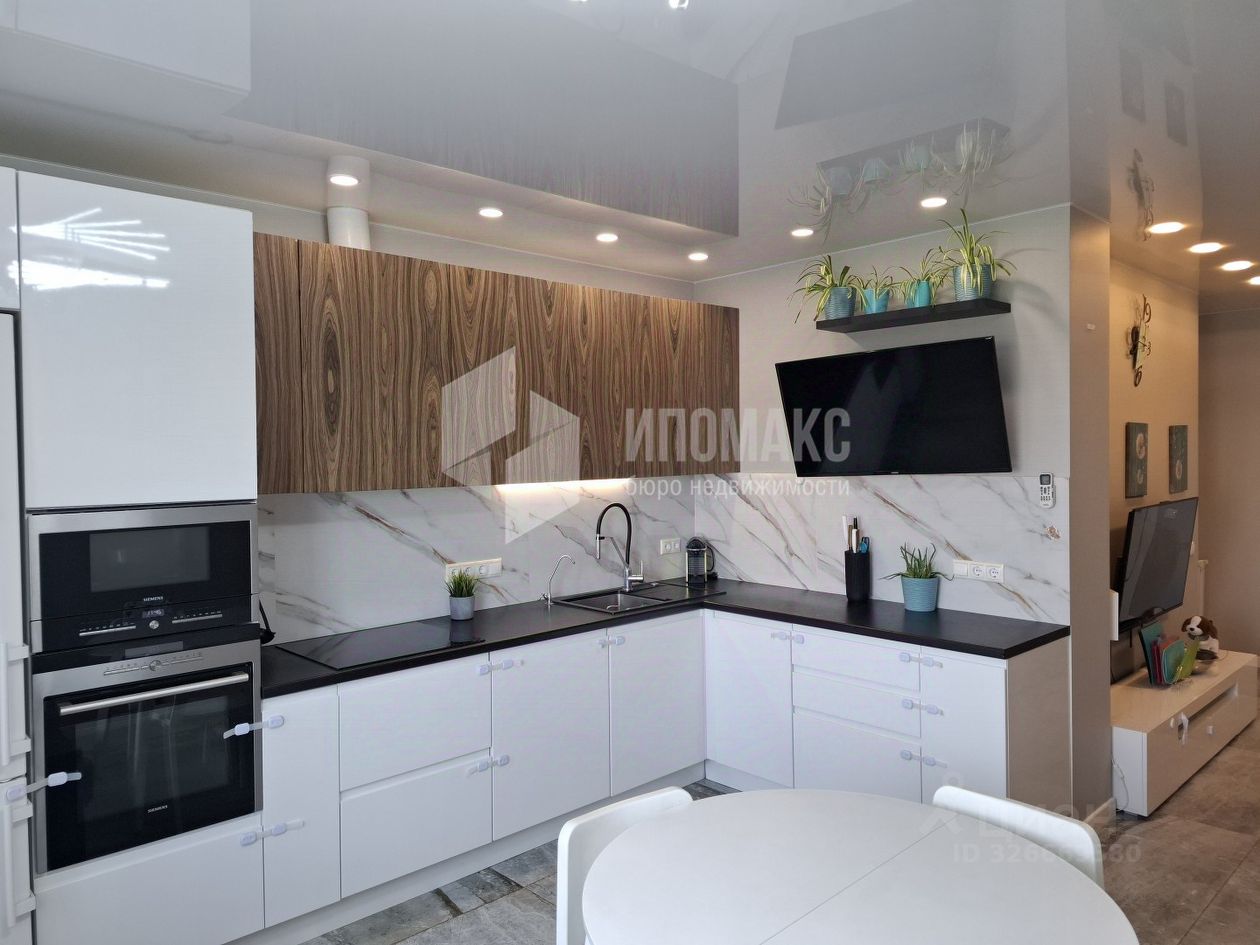 Произведен ремонт качественными материалами, установлен теплый пол в кухне-гостиной, в санузлах и прихожей, натяжной глянцевый потолок, кондиционер.