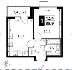 Продаётся 1-к квартира в ЖК класса Комфорт Плюс "1-й Ясеневский" общей площадью 35,9 кв.м на 13-м этаже 18 этажного дома.