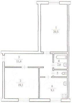 Общая площадь квартиры 64,3 м.кв. Две большие, две изолированные комнаты: 19,1 и 20,3 кв. м., просторная кухня.