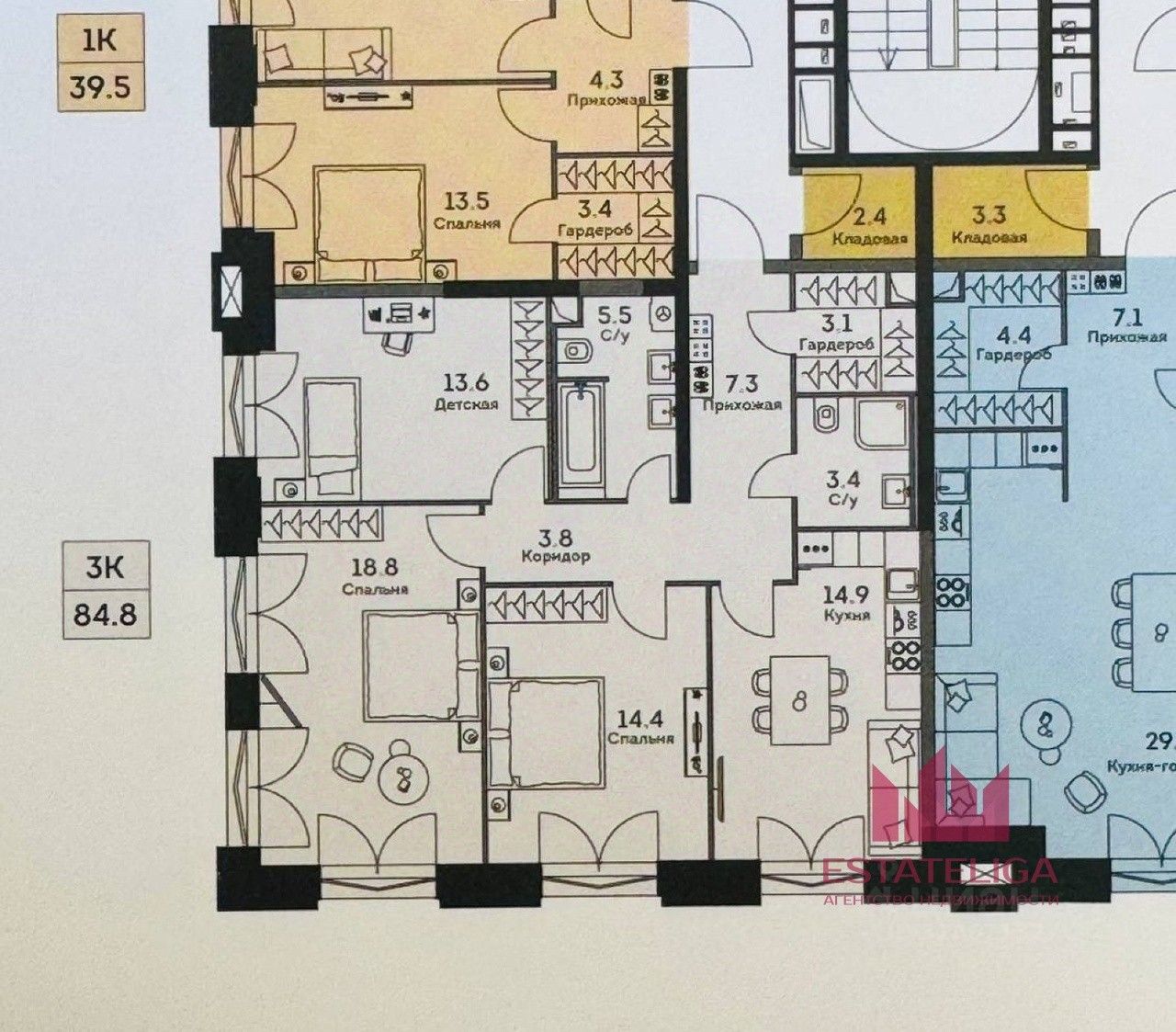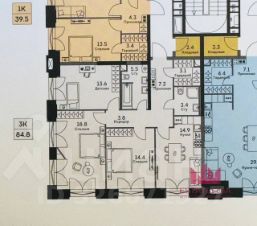 Id 60613. Продается трехкомнатная квартира с кладовкой в ЖК "Ever" на 3 этаже в 34 этажном здании.