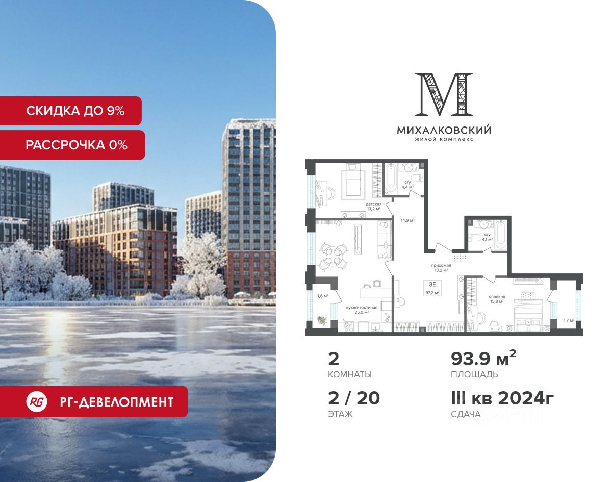 Скидка 9% при покупке квартиры! Цена указана с учетом максимального размера скидки.