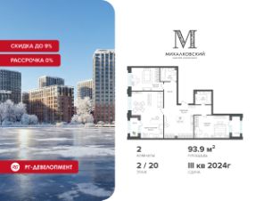 Продаётся 2-к квартира 93,9 кв.м. в ЖК "Михалковский" на 2-м этаже 20 этажного дома.