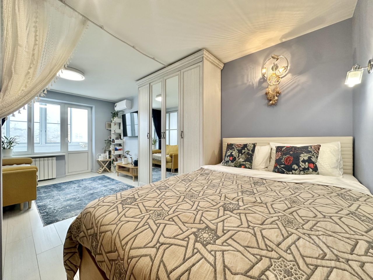 Изолированная спальная зона — уютное приватное пространство, где царит атмосфера покоя.