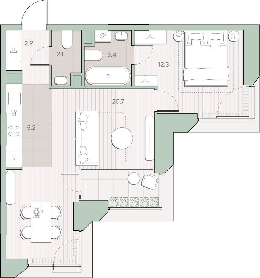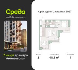Продаётся 1-комнатная квартира общей площадью 48.5 кв.м. с отделкой white box. Квартира расположена на 3 этаже корпуса 5.2 в жилом комплексе бизнес-класса "Среда на Лобачевского" в пешей доступности от метро "Аминьевская".