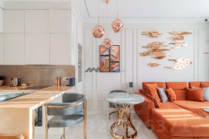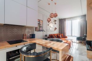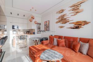 В отделке использованы дорогостоящие натуральные материалы, обилие интерьерных деталей. Полы - натуральный мрамор и инженерная доска, система "умный дом", приточно-вытяжная вентиляция, звукоизоляция фирмы Wolf (специализируется на звукозаписывающих студиях).