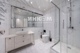 В квартире выполнен качественный ремонт в классическом стиле: на полу паркет из ценных пород дерева,межкомнатные двери из массива дерева, пластиковые стеклопакеты. Функциональная планировка: большая кухня с обеденной зоной; просторная гостиная; мастер-спальня с собственной ванной комнатой; вторая спальня; кабинет, который при необходимости можно переделать в спальню; гардеробная; 3 санузла, прихожая с гардеробной зоной для хранения верхней одежды.