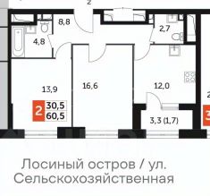 Baшему вниманию предлагается видовая 2-х комнатная квартира в ЖК Режиссер.